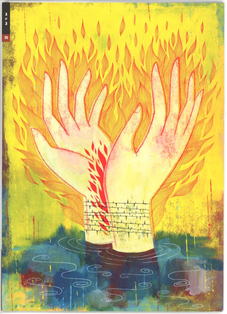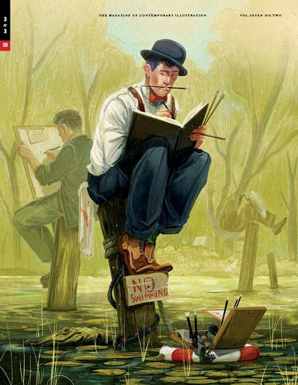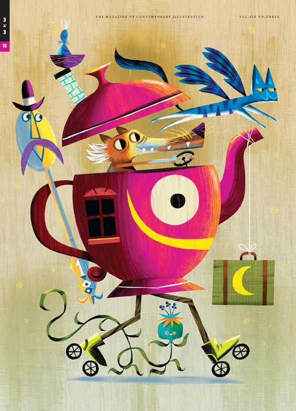 The mission at 3x3 is to preserve, protect and promote contemporary illustration in all its forms. The juried Annual features the work of artists from all across the globe, in fact this year it had entries from 45 countries and the medal winners represent eighteen of those countries. The best work from the last twelve months in advertising, editorial, publishing, institutional, children’s books and animation is features in 400+ pages .