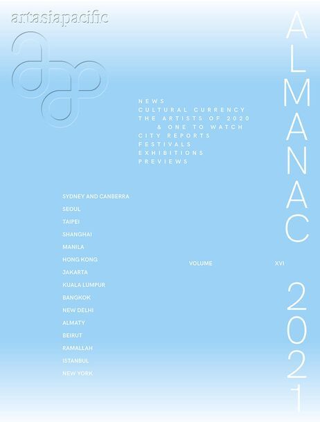 For more than 20 Years, ArtAsiaPacific magazine has been at the forefront of the powerful creative forces that shape contemporary art from Asia, the Pacific and the Middle East. Covering the latest in contemporary visual culture, ArtAsiaPacific is published in Hong Kong, with 30 editorial desks worldwide. The annual issue, the ArtAsiaPacific Almanac, covers the major art events of the past year and forecasts the key trends in the year to come.