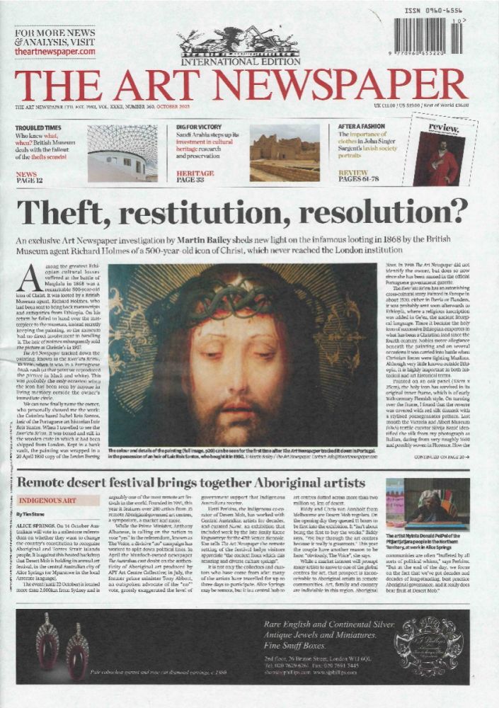 The world's only title devoted exclusively to reporting news from the global art scene. With editorial offices in London, New York, Paris, Turin and Athens, The Art Newspaper brings 80 pages a month of news, interviews and debate from the world of art. A monthly newspaper for the international art scene read by art professionals the world over. Invaluable intelligence about the art world Nicholas Serota, Director, Tate Britain, London