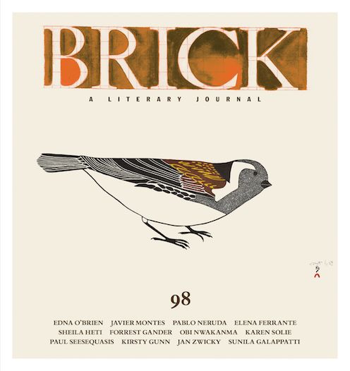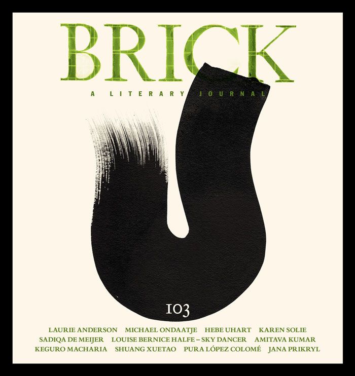 Each issue of Brick brings new essays and insights from the world’s best-loved writers and introduces fresh, emerging voices from all over. Since its inception in 1977, Brick has featured such heavyweights as John Berger, Karen Solie, Juan Gabriel Vásquez, Zadie Smith, John Irving, and Louise Erdrich.