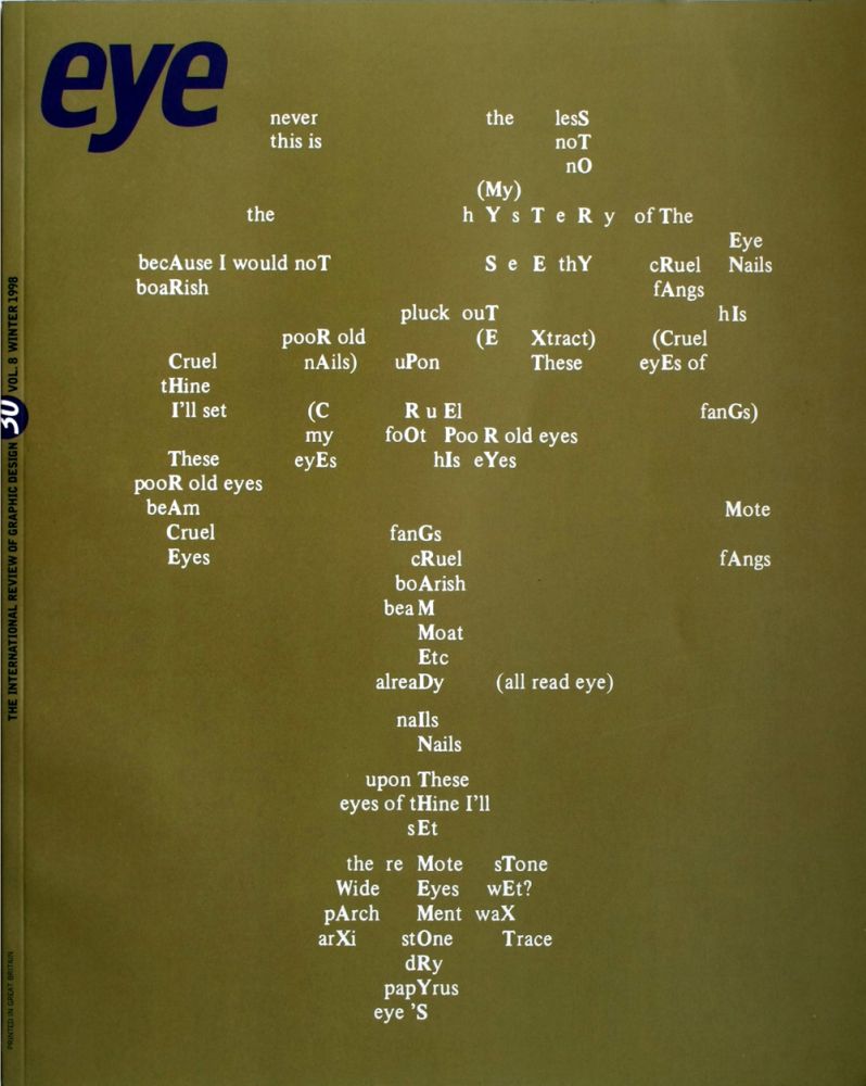 For a recent review of Eye click here http://www.printmag.com/daily-heller/eye-magazine-printed-design/