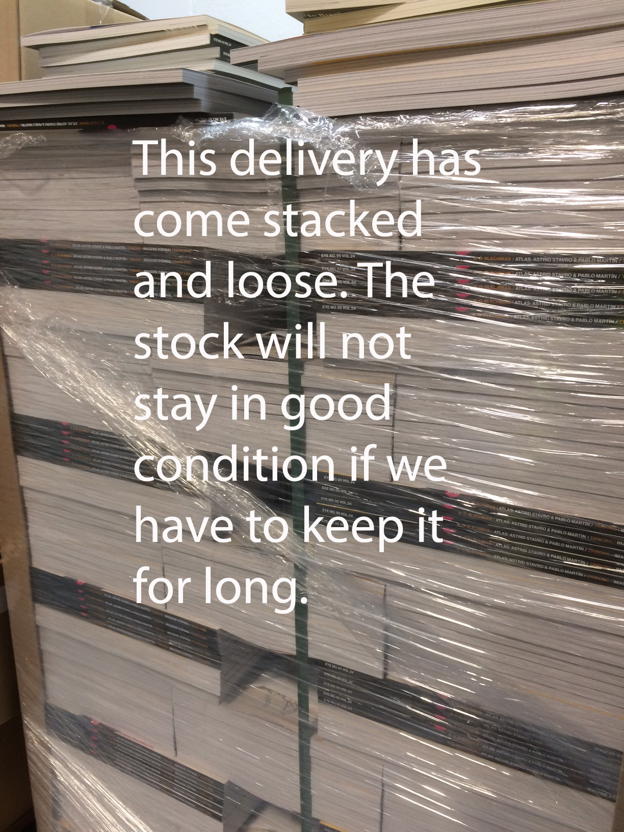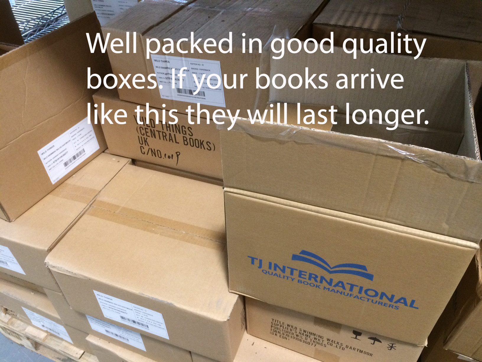 The ideal delivery comes in boxes, with a clear delivery note stating the quantity in each box, the number of boxes and the total stock delivered. Please see below about how your printer should pack books.