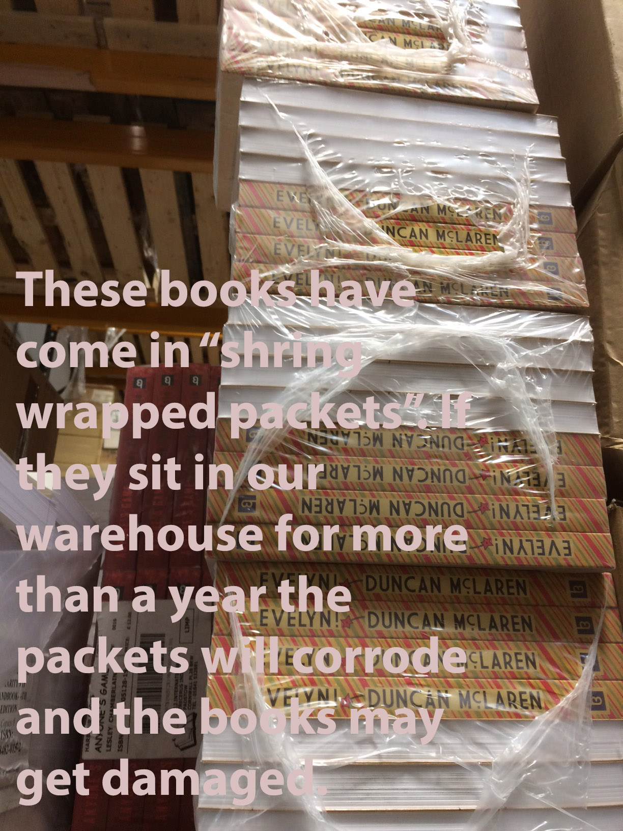 - If you expect your book to sit in our warehouse for more than 18 months do not have it sent to us in "shrink wrapped packets" get the printer to box it.