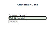 - In the customer data search enter ther name of the customer and click search. (in this example we are searching for "Mail Order Web").
