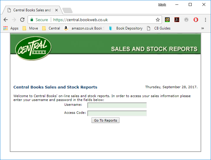 - Username: XXXXXX (You should know it but get this from your Central Books contact if not).
