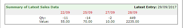 Yes, when you log in you get to see a summary of the sales in the last 8 days (clicking characters in red gives you more detail) and a total figure for activity in the month so far. If you search for a title or magazine issue you can get more detail. Clicking anying in red gives you more details.