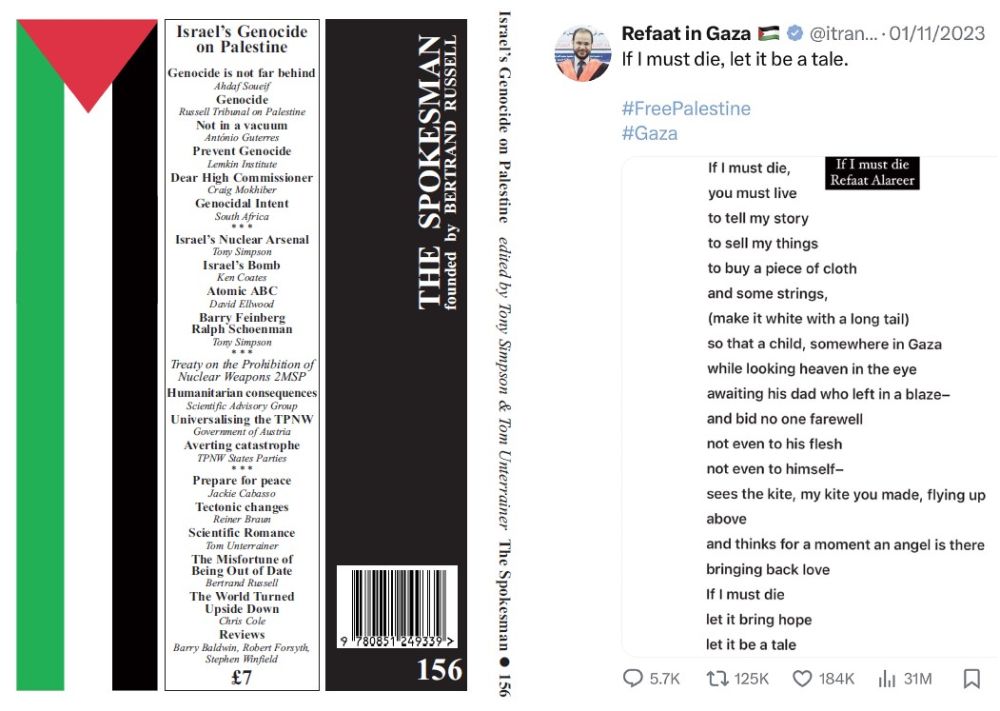 The Spokesman is the journal of the Bertrand Russell Peace Foundation. It features independent journalism on peace and nuclear disarmament, human rights and civil liberties, and contemporary politics. Contributors include Robert Fisk, Noam Chomsky, Naomi Klein, John Le Carre, Trevor Griffiths and Kurt Vonnegut to name a small selction.